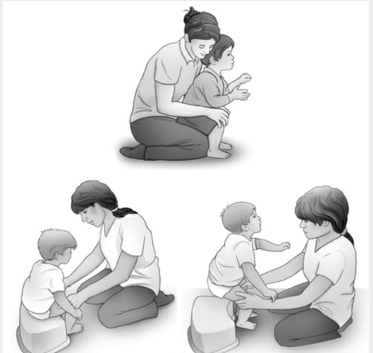در تمامی مراحل درمانگر کودک را حمایت میکند و حرکات درست برای ایستادن یا نشستن را به او آموزش می دهد تا کودک در تمامی این مراحل به استقلال برسد.